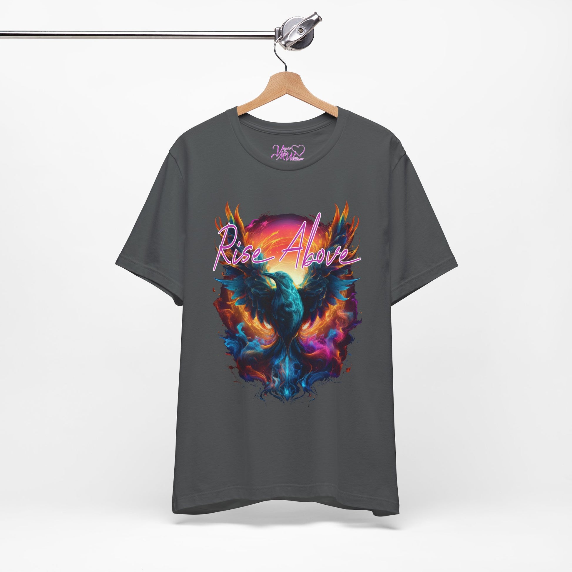 Step into positivity and style with the Rise Above Unisex T-Shirt from Voyce McWilliams’ Affirmations Collection. Designed to inspire confidence and motivation, this high-quality tee features the uplifting words Rise Above set against a vibrant, colorful background. Choose from light pink, light blue, or classic black lettering to match your unique vibe, with multiple shirt colors available to suit every look.