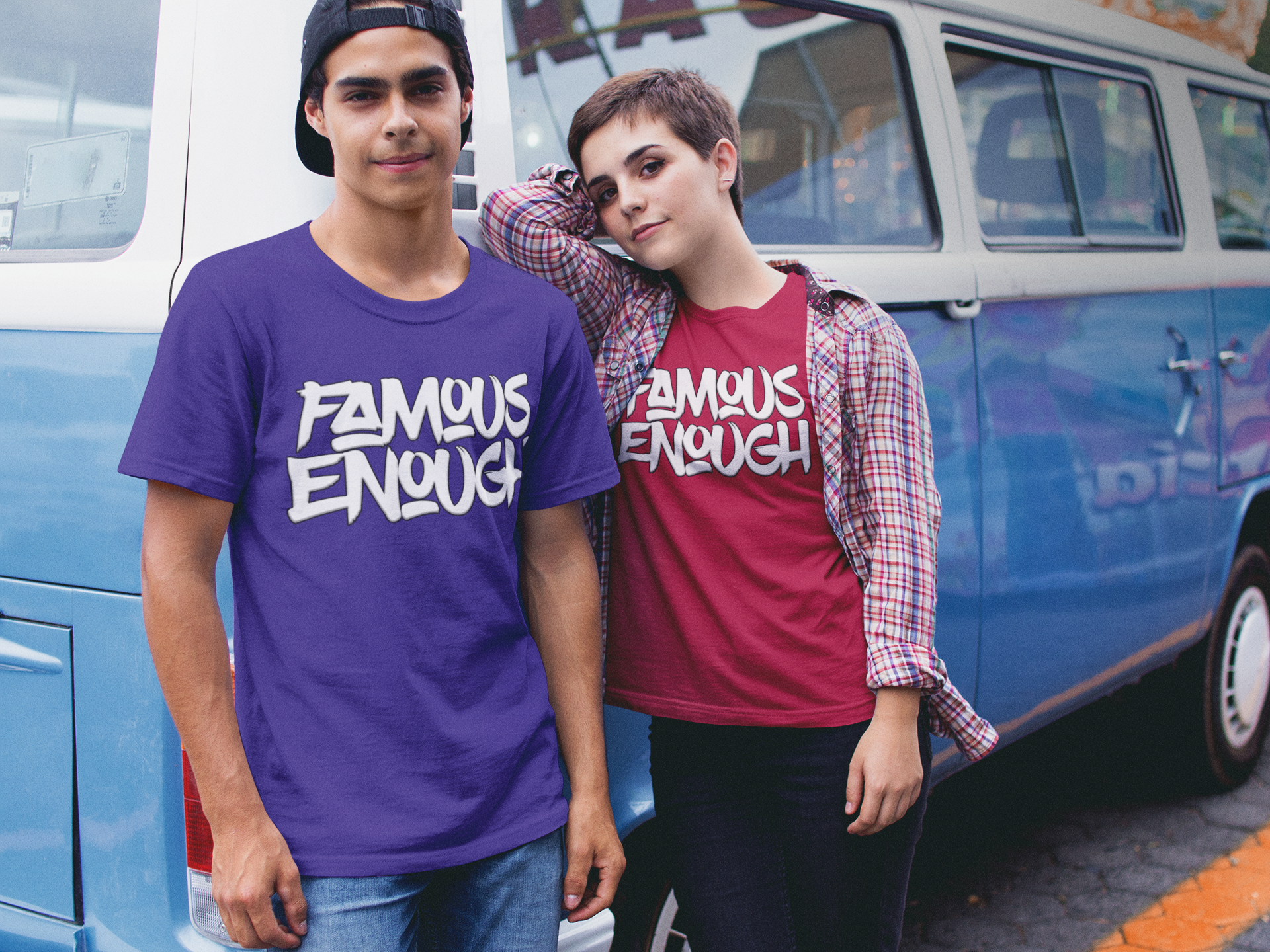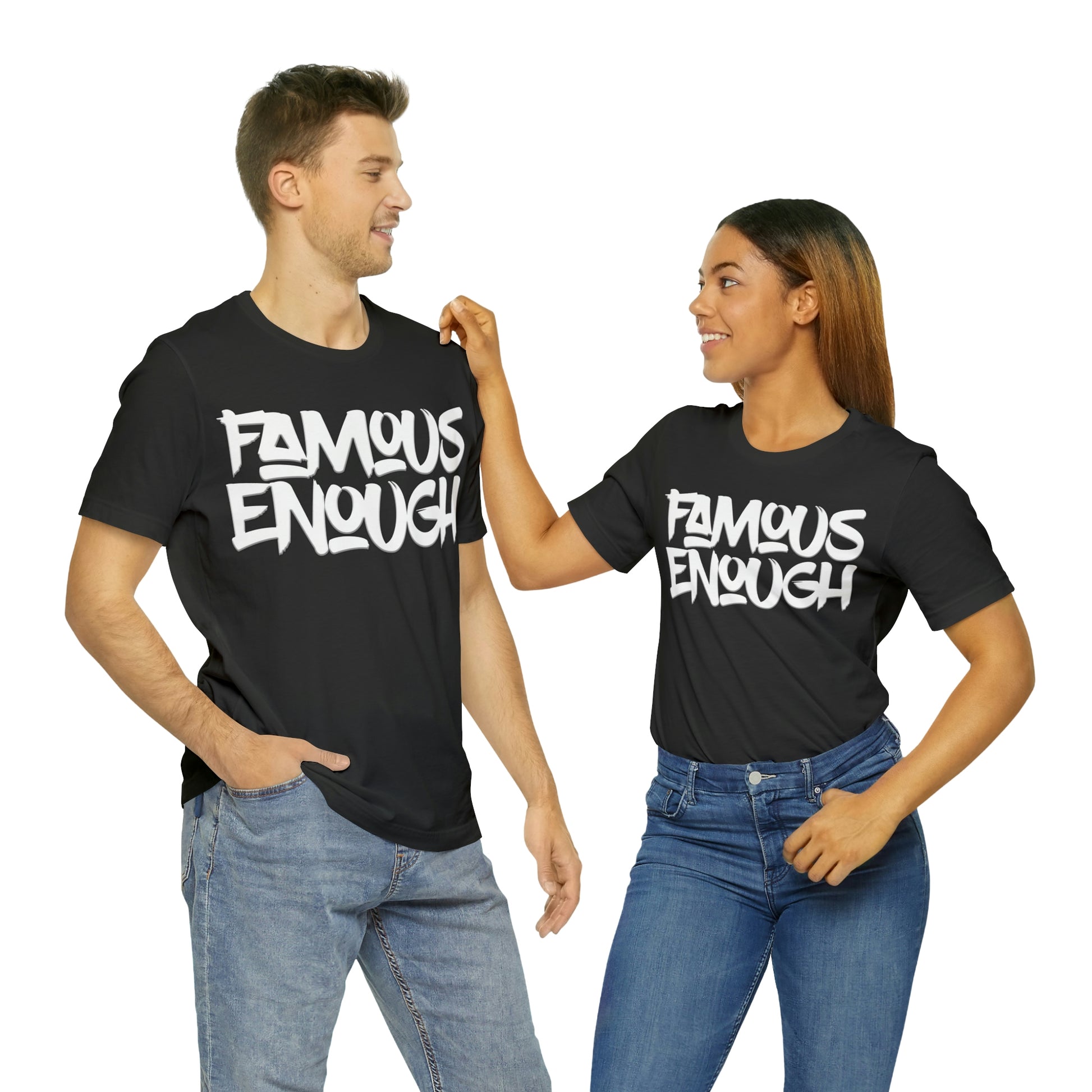With "Famous Enough" emblazoned across the chest, you'll make a statement wherever you go. Whether you're hitting up the local skatepark or just hanging out with friends, this t-shirt is the ultimate expression of your individuality and confidence.