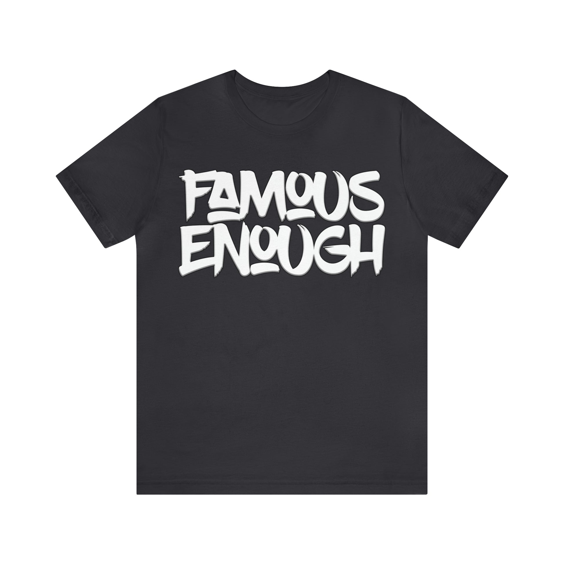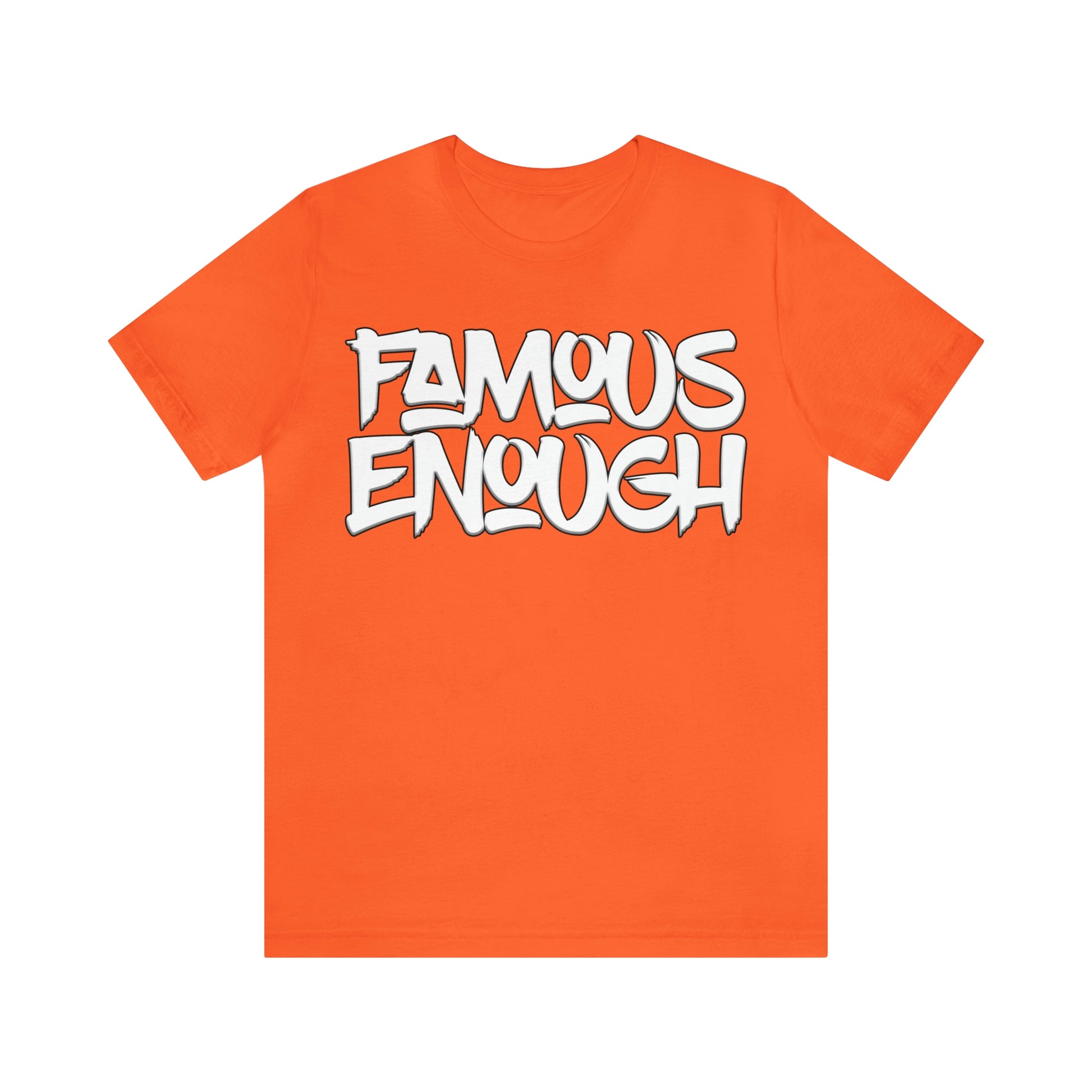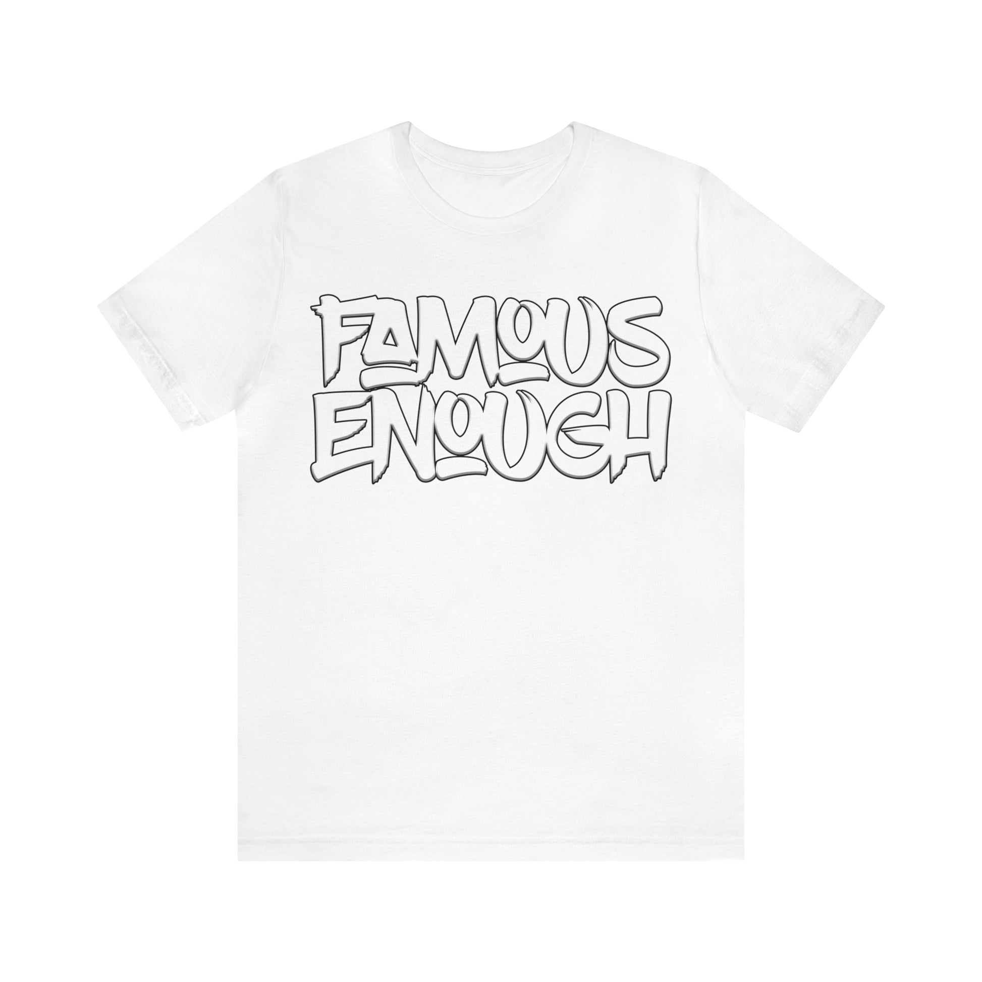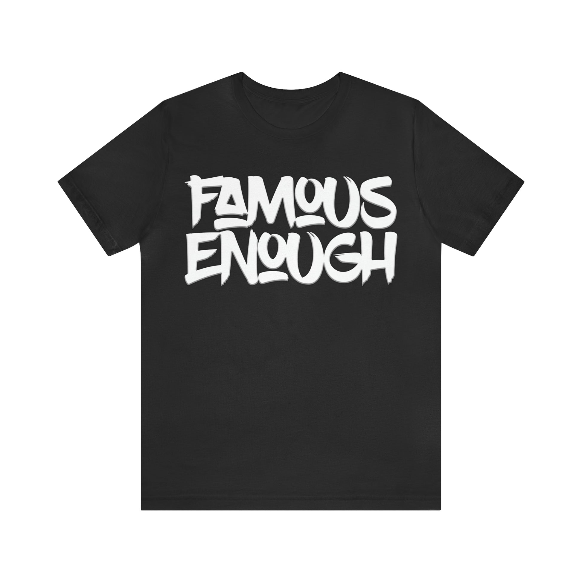 Introducing our "Famous Enough" t-shirt, the perfect addition to your streetwear collection! Made with high-quality materials and featuring a bold graffiti-style font, this shirt is sure to turn heads and start conversations.