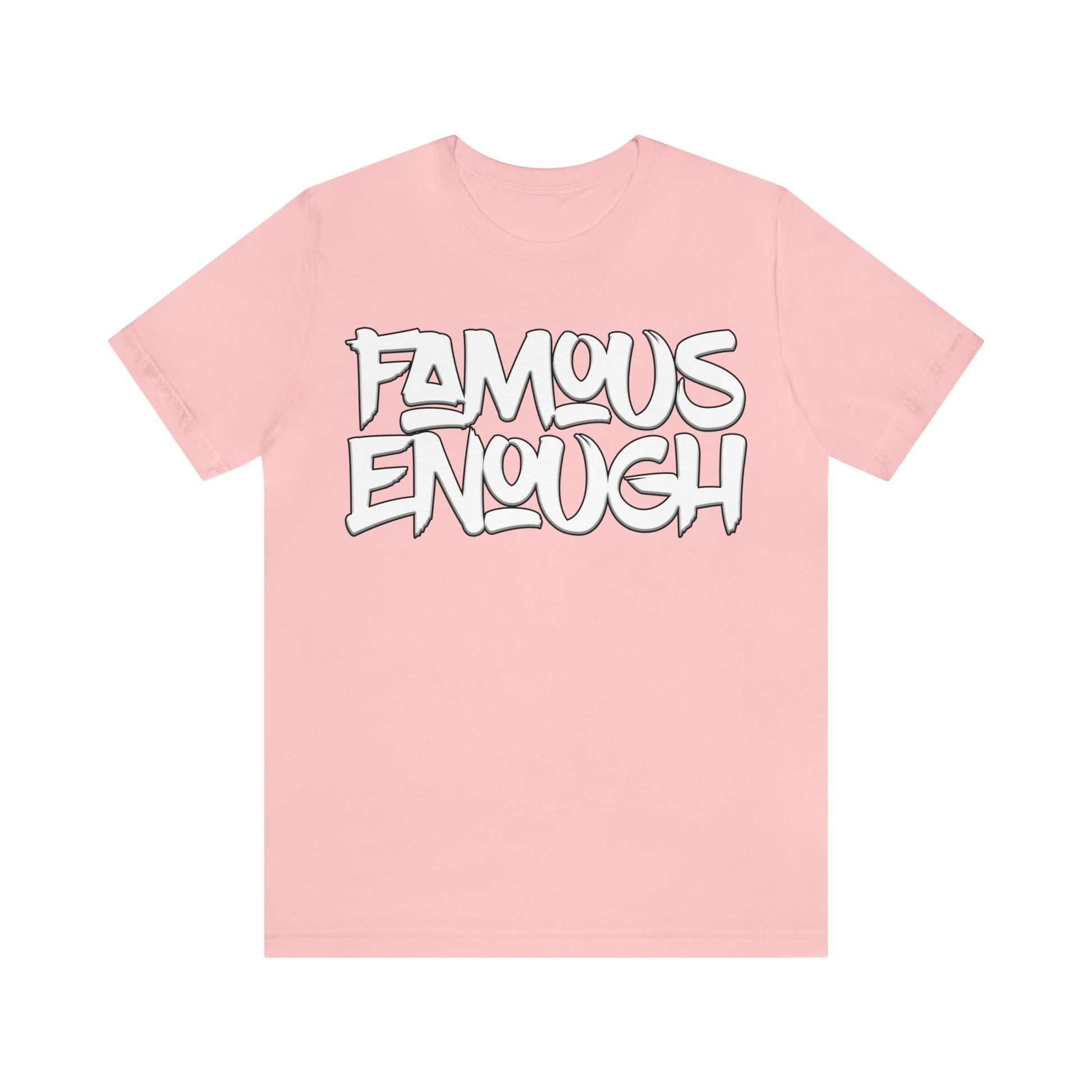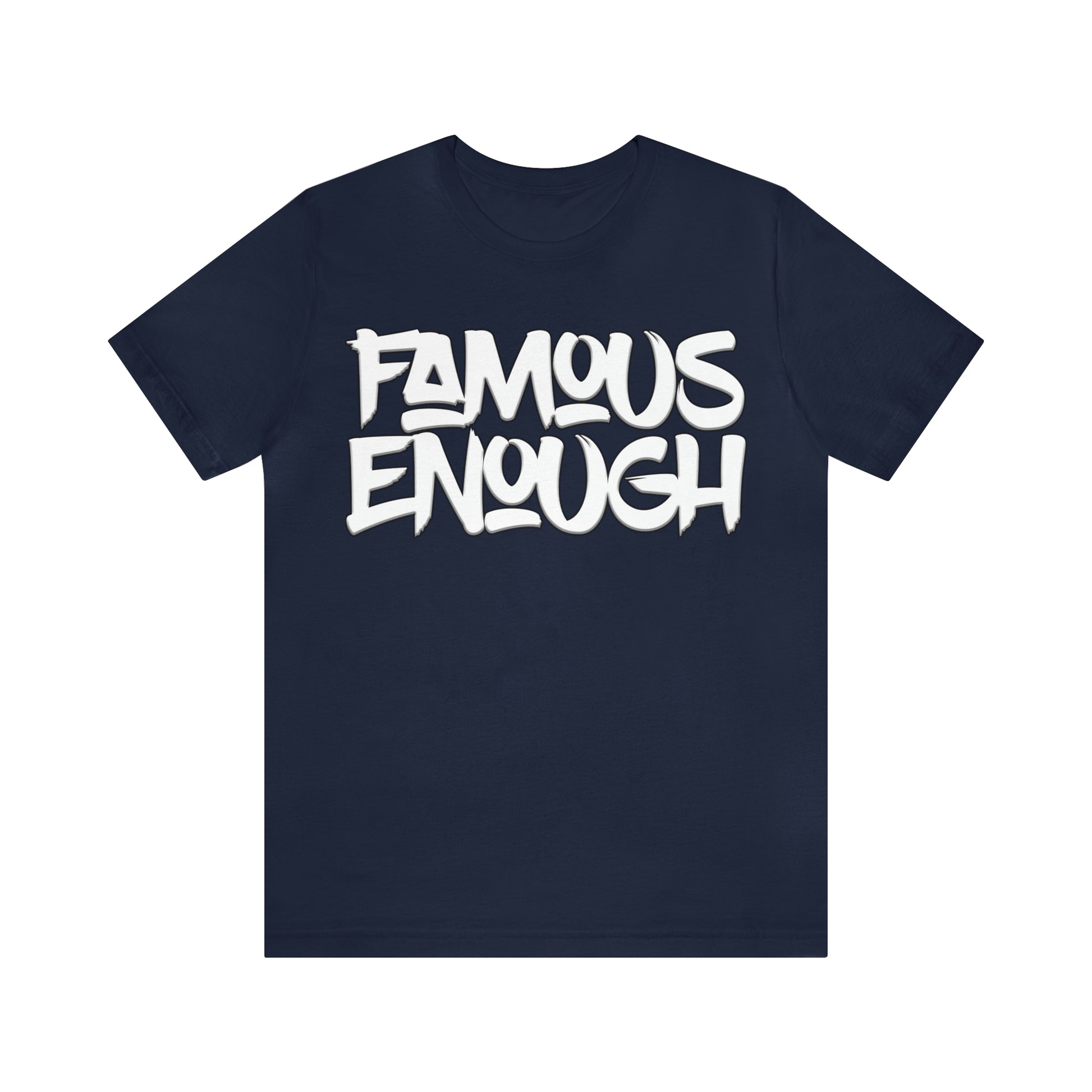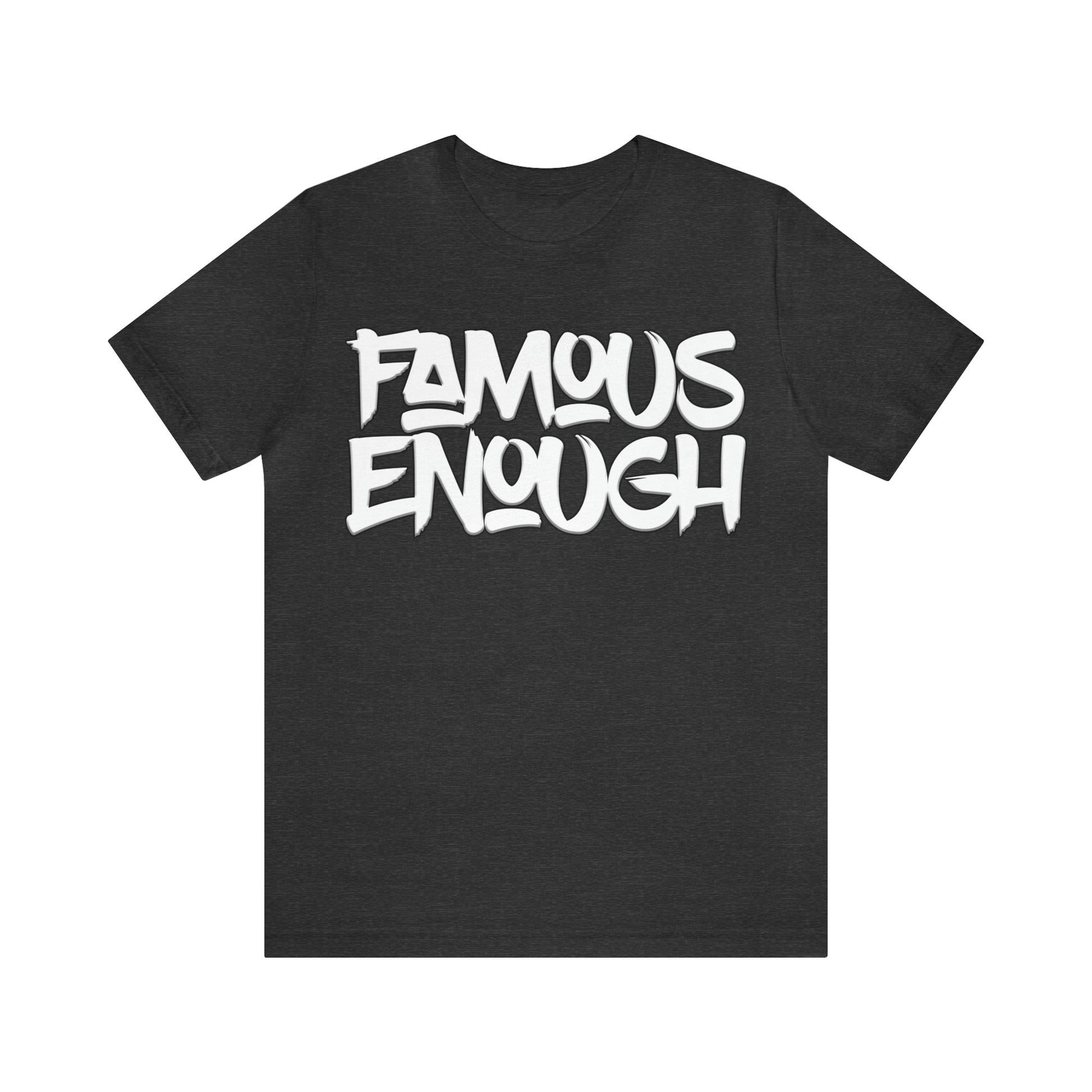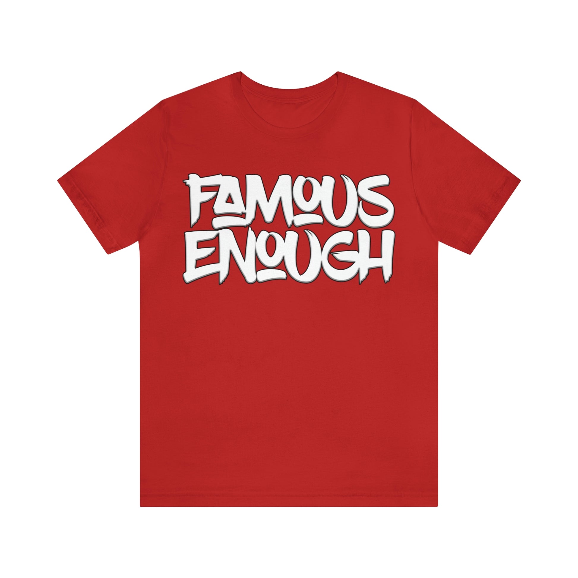 Introducing our "Famous Enough" t-shirt, the perfect addition to your streetwear collection! Made with high-quality materials and featuring a bold graffiti-style font, this shirt is sure to turn heads and start conversations.