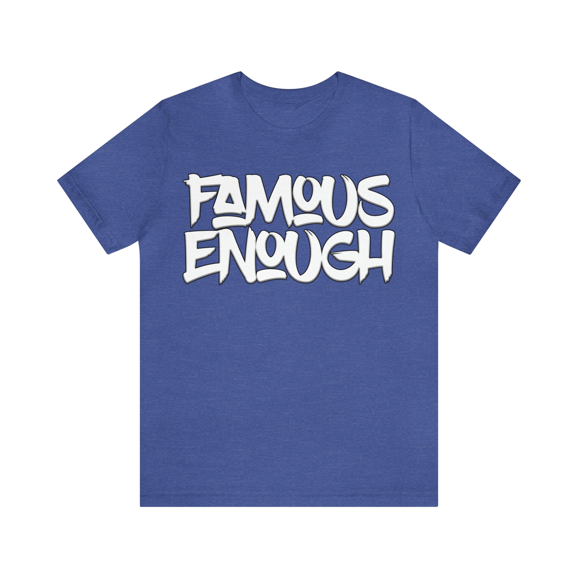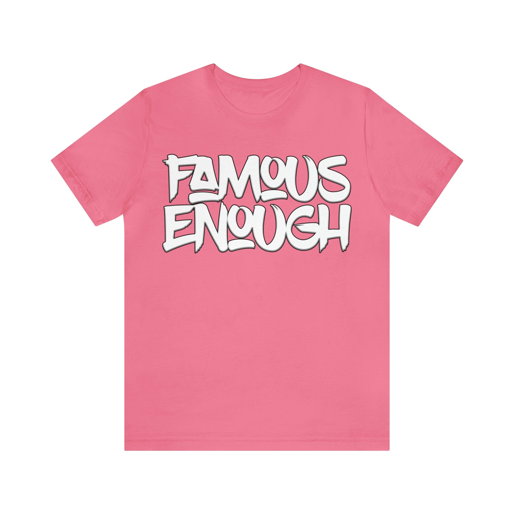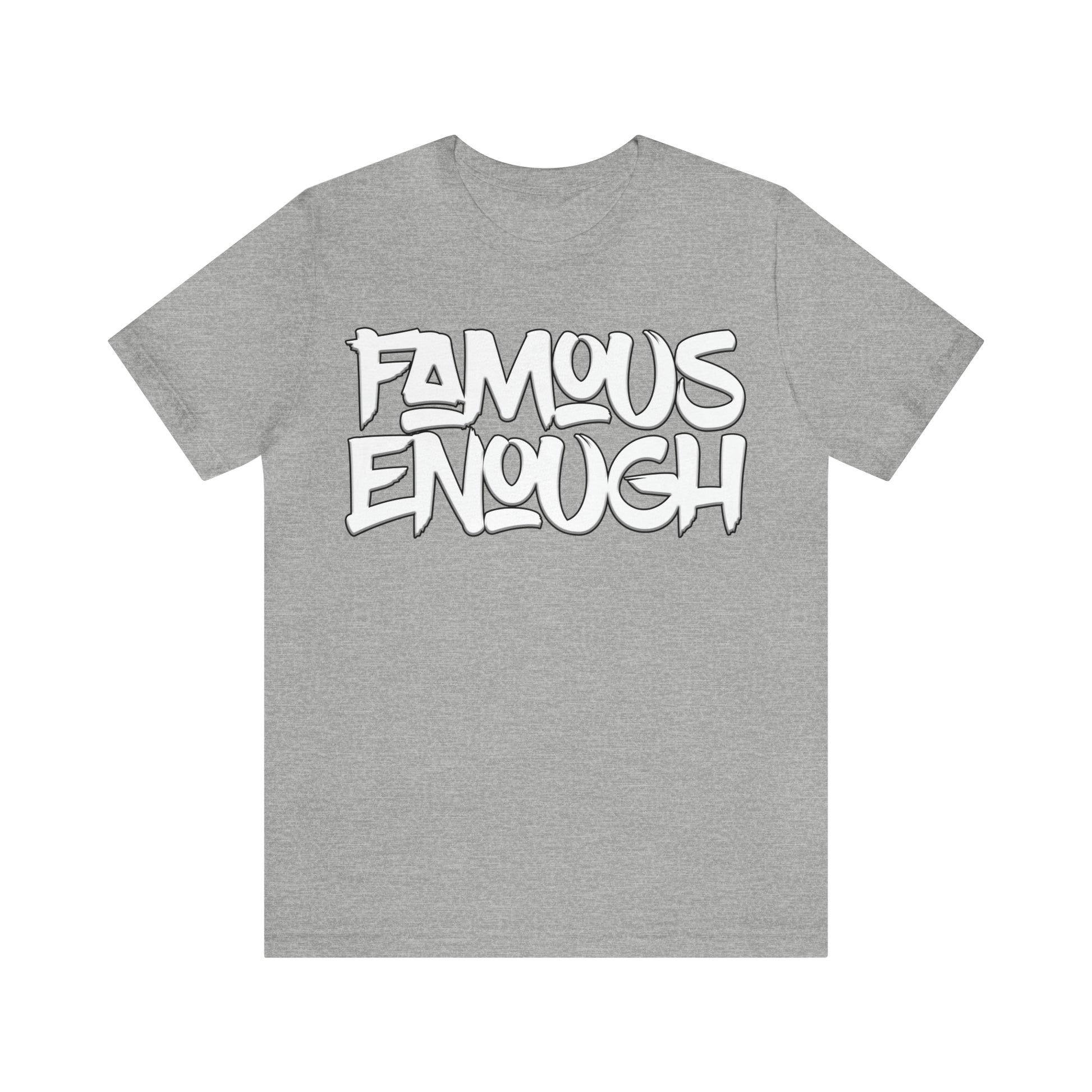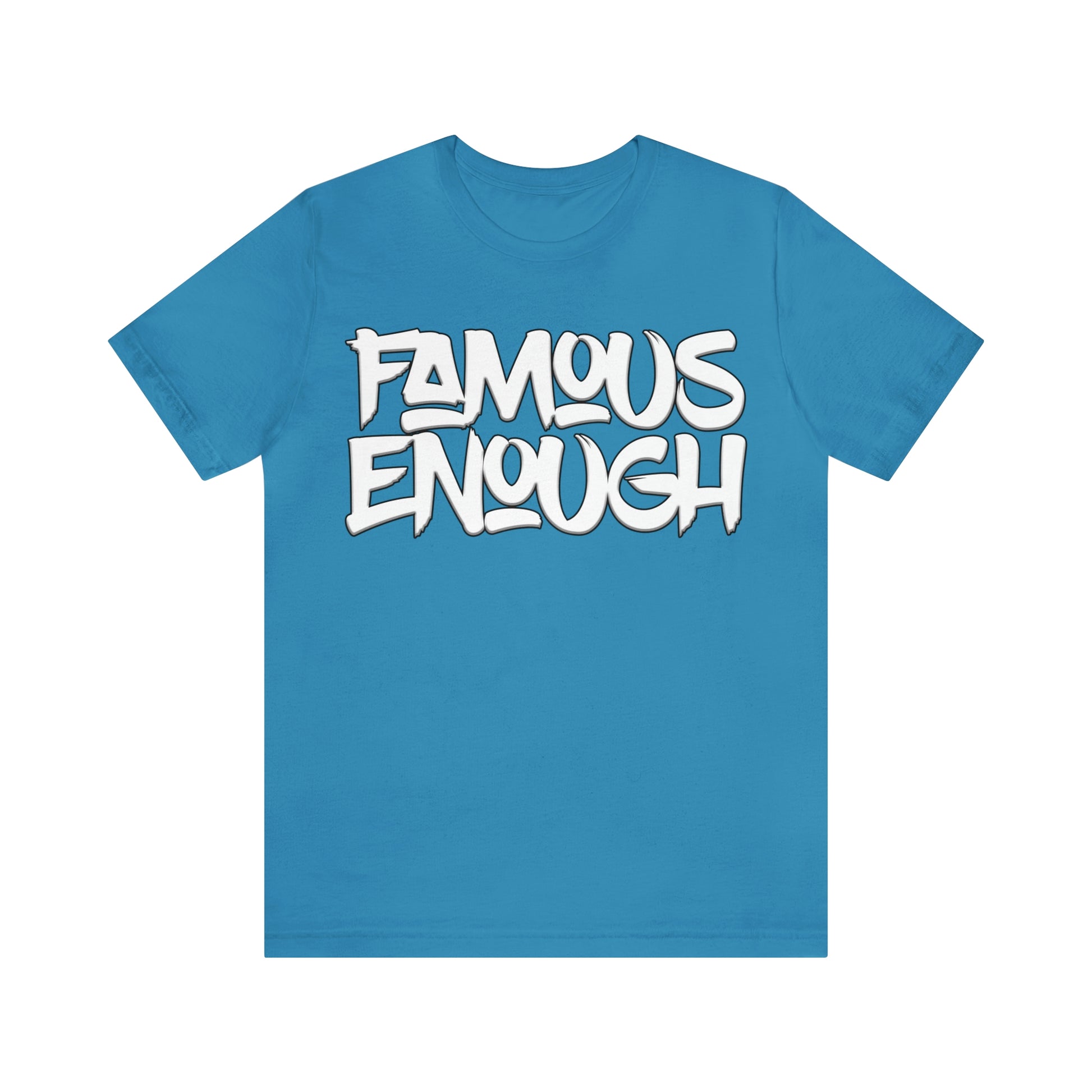 Introducing our "Famous Enough" t-shirt, the perfect addition to your streetwear collection! Made with high-quality materials and featuring a bold graffiti-style font, this shirt is sure to turn heads and start conversations.